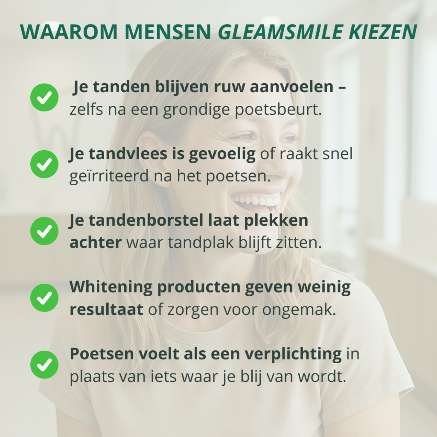 Bij GleamSmile™ staan we voor veiligheid, kwaliteit en duurzaamheid in mondverzorging.